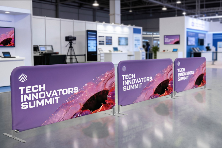 Our Crowd Control Barriers can be used for so many different purposes! With a lightweight aluminum frame and full color printed fabric sleeve that covers the frame, they are a low cost, stylish product - perfect for people movement control but also great as a shopping center display, cafe barrier or lower height media wall for general advertising!