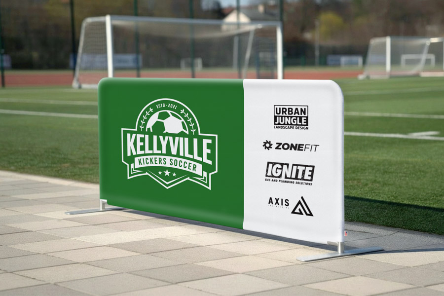The printed polyester fabric is sewn into a “sleeve” which simply slides over the top of the Crowd Control Barrier frame and is zipped up at the bottom. This provides a stylish, seamless sign and hides the frame - so all you see is the printed graphic!