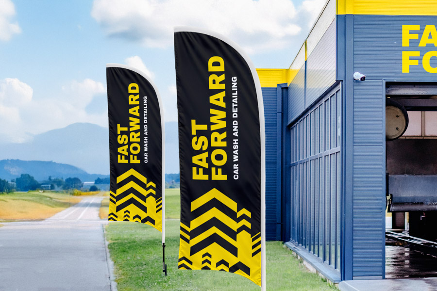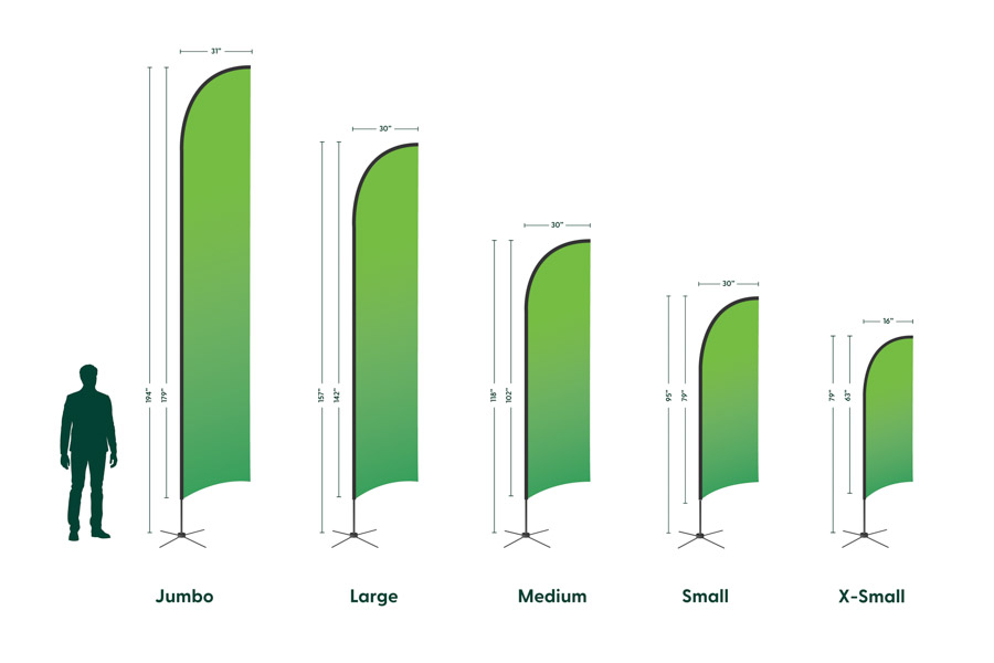 Just select your preferred size and choose from our Single Sided flag (with the image bleeding through to the other side in mirror reverse) or our Double Sided block out flag (with sharp graphics that can be read correctly from either side). Then supply your artwork (or design your own), and we will have your Feather Flag produced and ready for dispatch in just 24 hours!