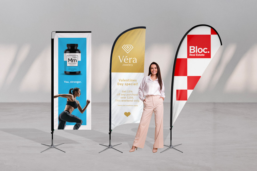 You can still advertise your business or product with a swanky new banner, without having to get the whole pole set and base with it - simply change the flags!