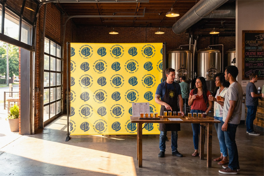Your Step and Repeat frame will be slightly larger than the printed graphic that you order, allowing it to be suspended by the frame.