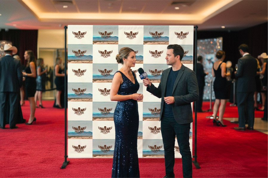 Our Step and Repeat Adjustable Banners provide a great low-cost backdrop for press conferences, interviews, red carpet events, trade shows, and exhibitions.