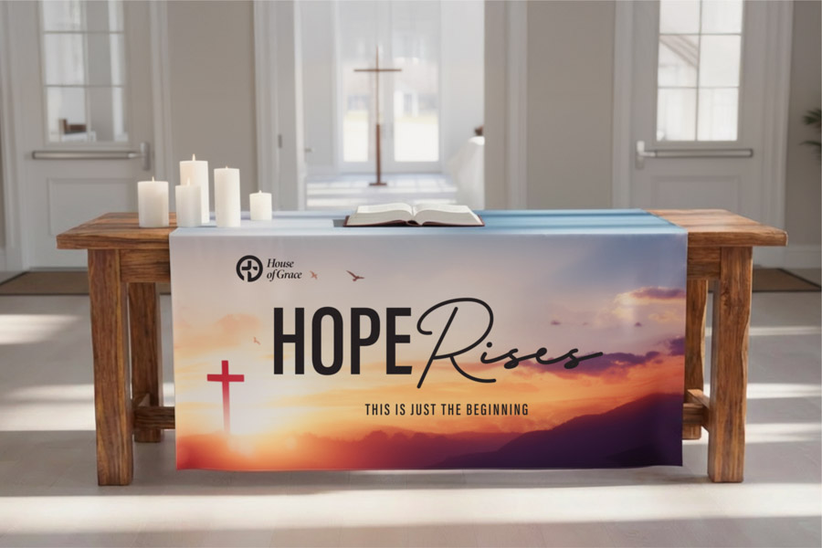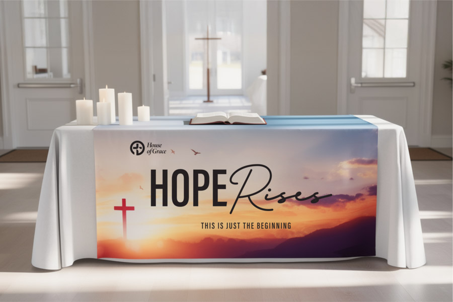 Our Table Runners provide high impact, low cost signage for your trade events, conventions, shopping mall displays or office reception.
